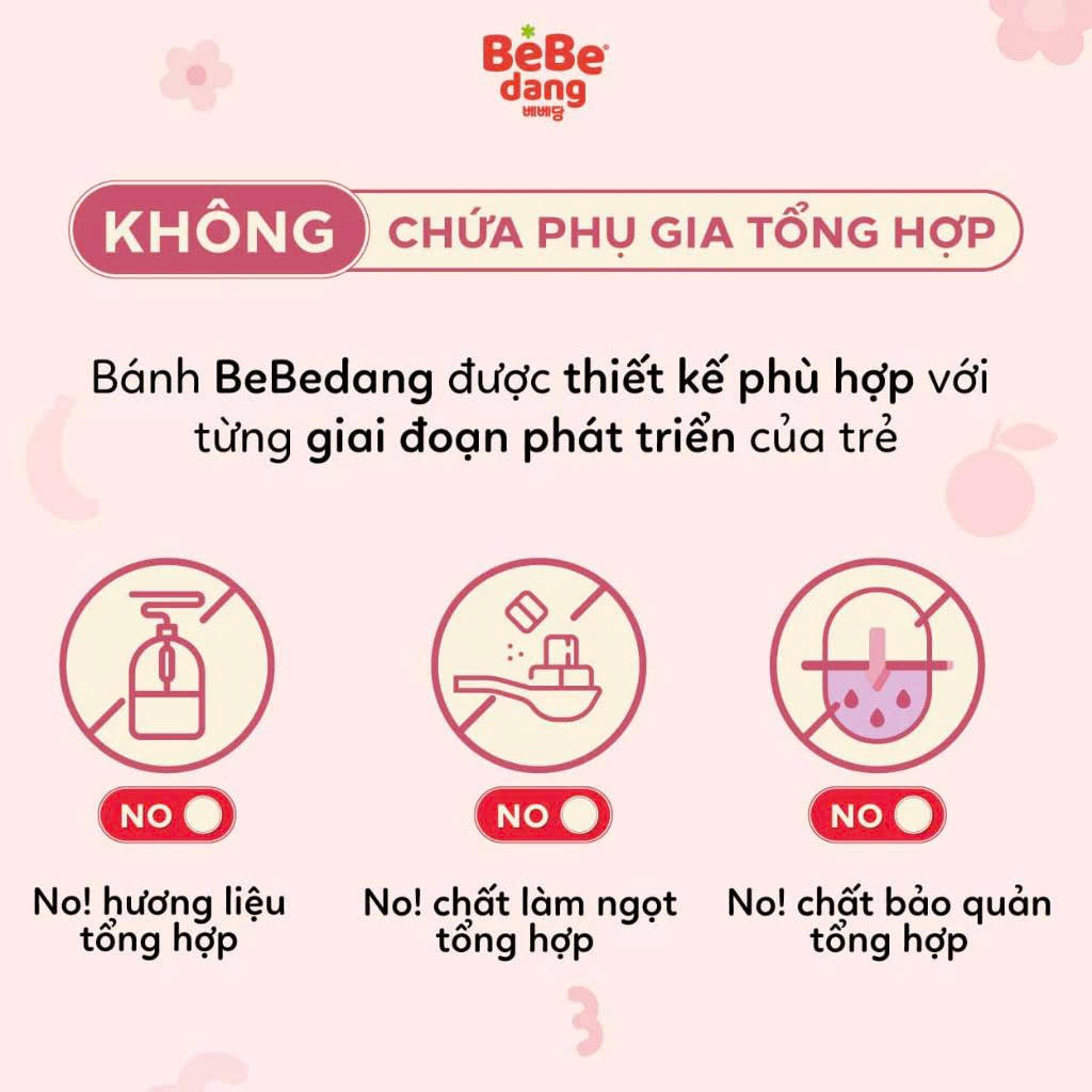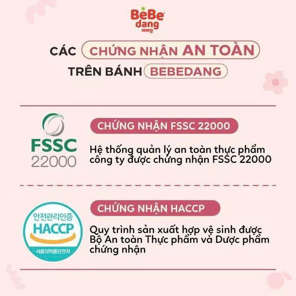 - Bánh ăn dặm BeBedang được sản xuất từ thương hiệu thực phẩm nổi tiếng Hàn Quốc giúp bố mẹ hoàn toàn yên tâm khi bé tập ăn dặm