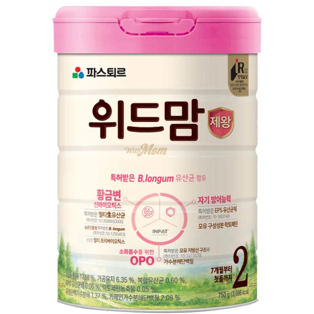- Sở hữu 5 bằng sáng chế độc quyền, Withmom Cesar là sản phẩm sữa công thức hỗ trợ tiêu hóa toàn diện cho trẻ nhỏ, với 4 chủng lợi khuẩn đường ruột, trong đó B. longum lần đầu tiên được bổ sung vào sữa bột tại Hàn Quốc, kết hợp cùng 800mg chất xơ tạo nên dưỡng chất vàng cho hệ tiêu hóa Synbiotics