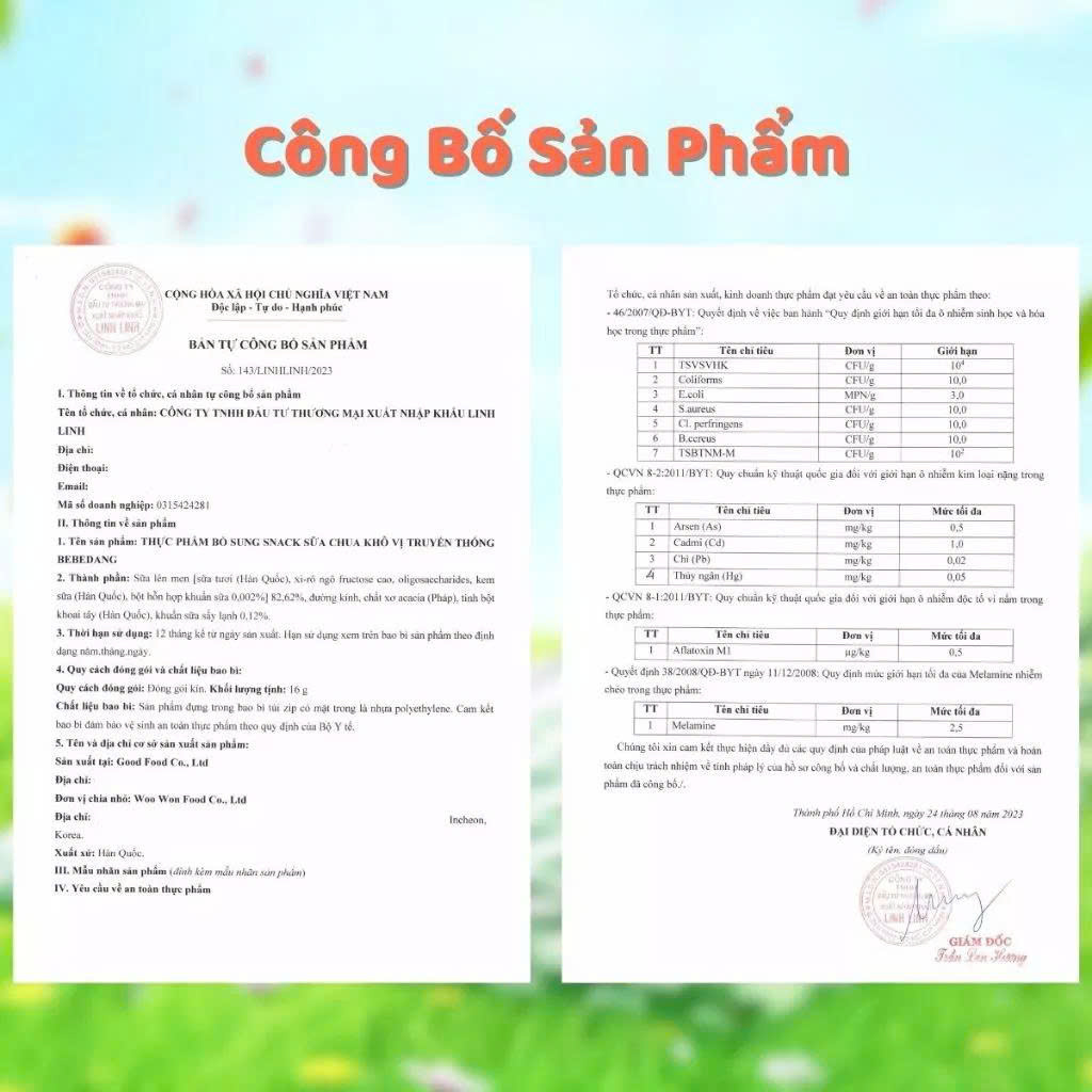 - Tên sản phẩm:Sữa Chua Khô BEBEDANG Ăn Dặm Cho Bé Sấy Lạnh, Bổ Sung Lợi Khuẩn 16g