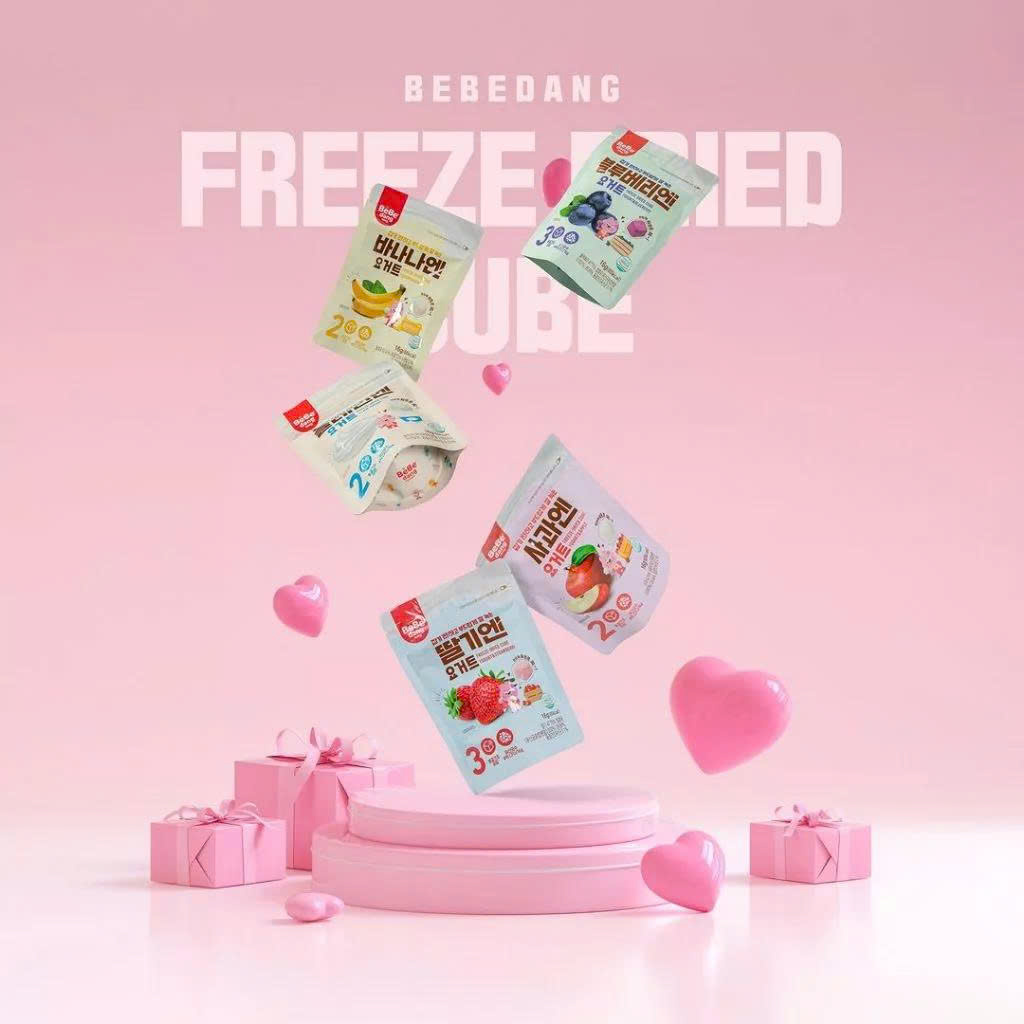 - Sữa chua khô BeBedang được làm từ bột hỗn hợp khuẩn sữa lên men kết hợp cùng trái cây tự nhiên Hàn Quốc sản xuất với công nghệ sấy lạnh sẽ giữ được mùi vị thơm ngon và dinh dưỡng từ sữa và trái cây